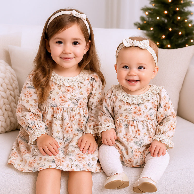 Linen Vintage Floral Romper with Lace Accents 0-3M