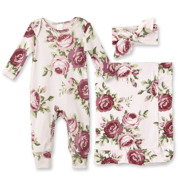 Vintage Blooms Bamboo Romper & Blanket Set