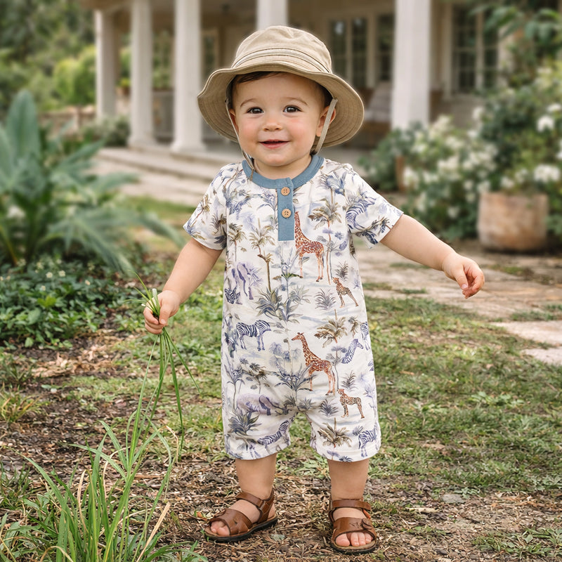 Baby Boy Bamboo Zipper Romper & Hat Gift Set