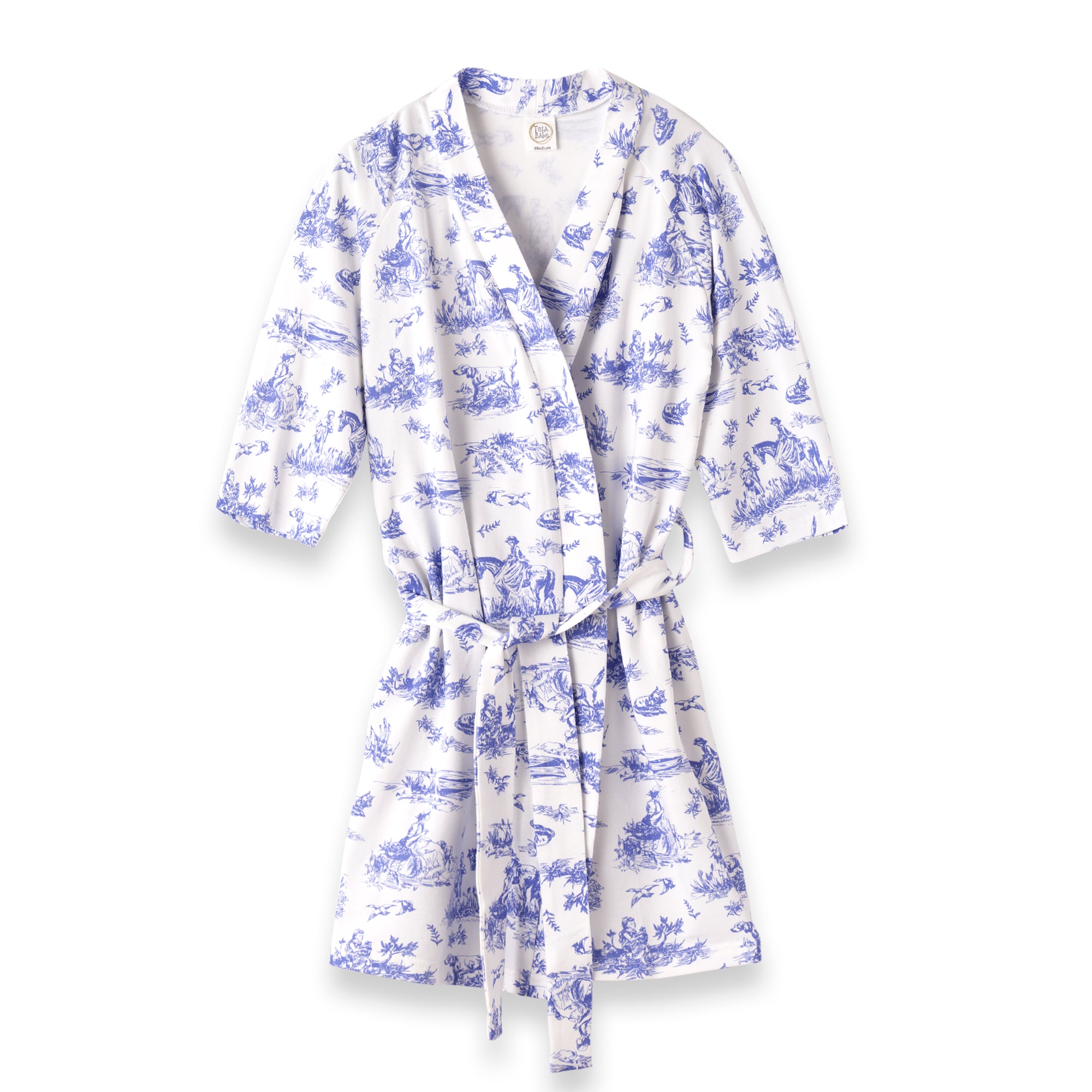 Sweet, classic, and beautifully soft, this Toile de Jouy robe features a timeless blue-and-ivory pastoral print in our ultra-soft bamboo blend. Lightweight, breathable, and gentle on sensitive skin, it’s designed for comfort from morning snuggles to bedtime wind-down.