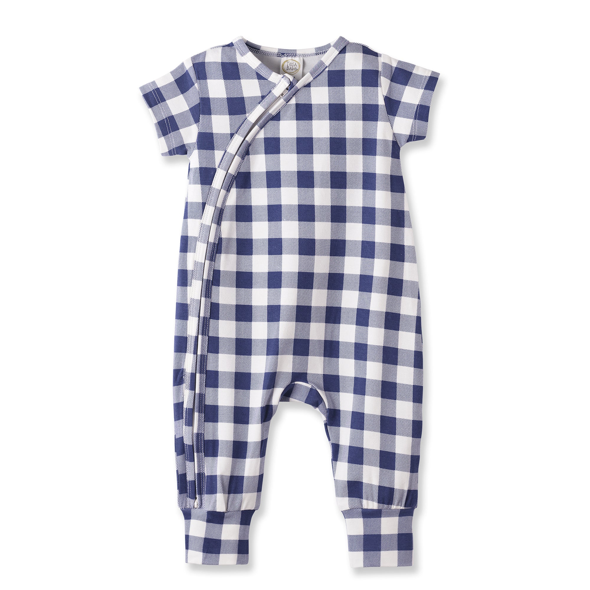 Picnic Plaid Bamboo Baby Zipper Romper w/Convertible Cuffs